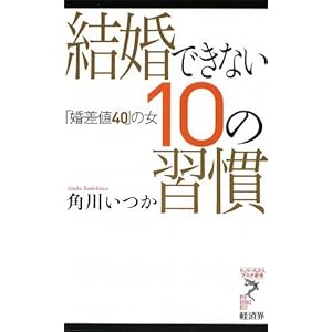 『結婚できない10の習慣 「婚差値40」の女』売れ残る女達の ~ 結婚できない10の習慣とは、どんな習慣なのか? 『結婚できない10の習慣 「婚差値40」の女』は、リュウ・ブックスアステ新書から出ています。 著者は、日本ペンクラブ会員の 角川いつか さんです。結婚できない10の習慣をあげると共